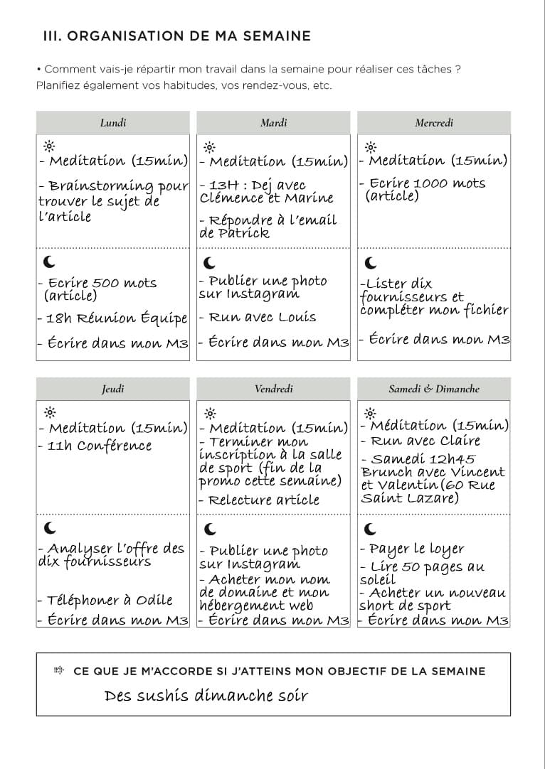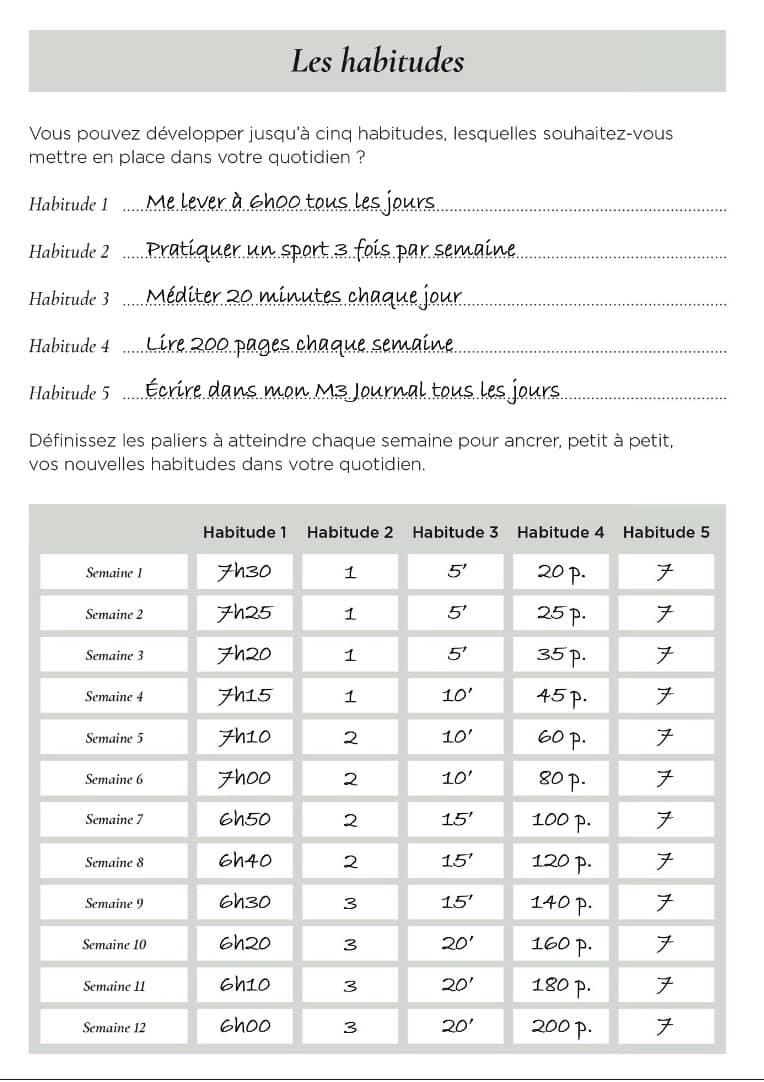 Véritable livre de bord, il va vite vous être indispensable. Mais, là où la méthode M3 fait la différence avec les autres méthodes, il ne va pas devenir un calvaire à remplir !