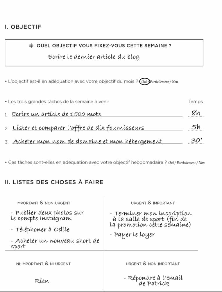 C’est une méthode qui semble agréable à utiliser, et qui permet de se poser pour programmer les choses, sans que ce soit une chose de plus à faire dans un emploi du temps chargé !